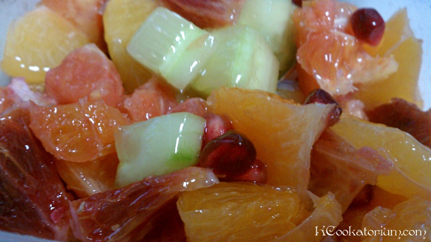 Inspired by Marcella Hazan‘s Cucumber Orange Salad
